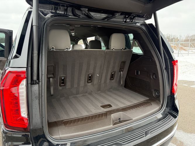 Third-row seatback upholstery: Carpet third-row seatback upholstery